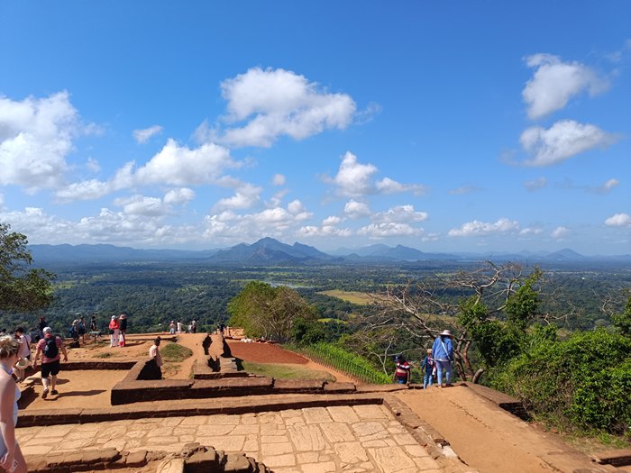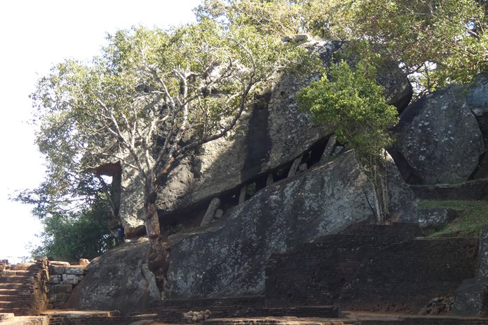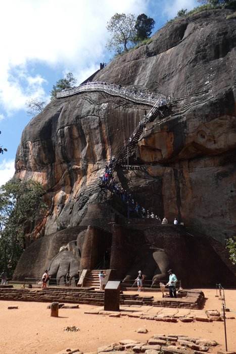The Temple of the Tooth houses a relic from Bhudda and was packed with both devotees making offerings and praying for help. The crowds are split into two lines, devotion and tourist, which eases things slightly but you are hurried past the chamber where the tooth is kept so fast there is hardly time to see anything. Ayurvedic medicine/treatment is practiced here and is herbal holistic treatment. It was interesting to hear about the herbs and what they contain from the herbalist who showed us around and of course you were able to buy oils herbs and balms before you left. The cave temple was another Buddhist temple, this time five chambers carved out of solid rock. I guess there was some kind of flaw in the rock to give them a start. Interesting to see both the chambers and statues which were all hand cut with basic tools and to consider the skill involved. A long drive then took us on to the Sigiriya area and our final hotel. Sigiriya rock or the Lion Fortress is a 180m high granite peak which towers above the raised magma plain. It was the capital during the reign of King Kassapa 477-99 and consists of two palaces and gardens. The summer palace is on the plain and the winter palace on top of the rock which would have been accessed through the mouth of a giant lion built up the rock using bricks and plaster. Today all that is left of the lion are the carved paws and access to the top is by way of metal staircases attached to the rock face, at one time there would have been many rock paintings but now the only remaining ones are in a small chamber accessed by a spiral staircase, these are thought to be of his wife, concubine or priests.