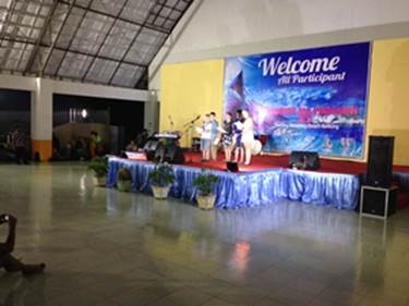 02:33.20S 107:39.65E On the way back from lunch we stopped at a traditional boat building yard. Very interesting to see how the local boats are constructed and sealed. A combination of old and new, methods, materials and tools. Meryon and James from You You were in their element, having both built traditional boats by hand themselves. A new boat like those we saw costs about $15,000 including the engine! The final part of our programme at Belitung was a dinner hosted by the local Regent. As it turned out this would be the last time that the majority of the fleet (44 out of an original 47 boats) would be together. It was a very good evening, not too many speeches, some very professional local dances and a very good buffet dinner. The night finished as always with everyone up dancing, some singers and some karaoke!