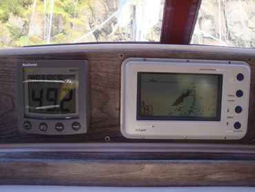 from the rock, still with 40m of water under the keel, looking at the underwater