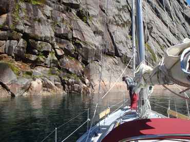 went as close to the cliff as we dared – nosing in to less than a boat’s length