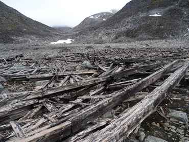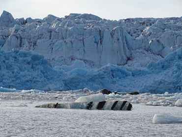 wreckage of the airship hangar at Virgohamna; walrus on the beach; the view