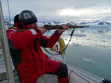 glacier; rifle practice; Rosinis in the ice at Magdalenefjord; fighting off