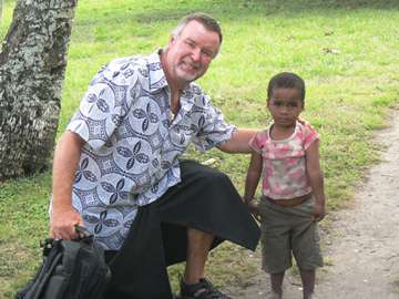 The path to the village from the boat landing. All dressed up to see the Chief. Sokei was on his way to chop some firewood, but said he was happy to take us to the Chief, and after sevusevu would show us around the village and introduce us to our host families who would look after us during our stay. He was dressed in his work clothes of t-shirt and shorts, but popped into his house along the way to collect a sulu which he wrapped around his waist as we walked. When we arrived at the Chief’s house, we took off our shoes and went inside. We were greeted “Bula, vinaka” by the Chief, and gestured to sit on the mat facing him. Men sit cross-legged with their knees covered (hence the sulu) and ladies sit with knees together and feet to one side. It is a mark of disrespect to show the Chief the soles of one’s feet! Sokei placed our gifts of kava on the floor in front of Chief Daniel, and spoke to him at length in Fijian. He then explained to us that he had introduced us to the Chief and asked his permission for us to anchor, swim, fish, use the beaches and come into and move freely in the village. Chief Daniel then spoke at some length in Fijian, which Sokei translated for us as his acceptance of us into the village and permission to stay and anchor anywhere in the lagoon. He pointed out a couple of taboo places for fishing, but otherwise we could do as we pleased as long as we respected their home and environment.
