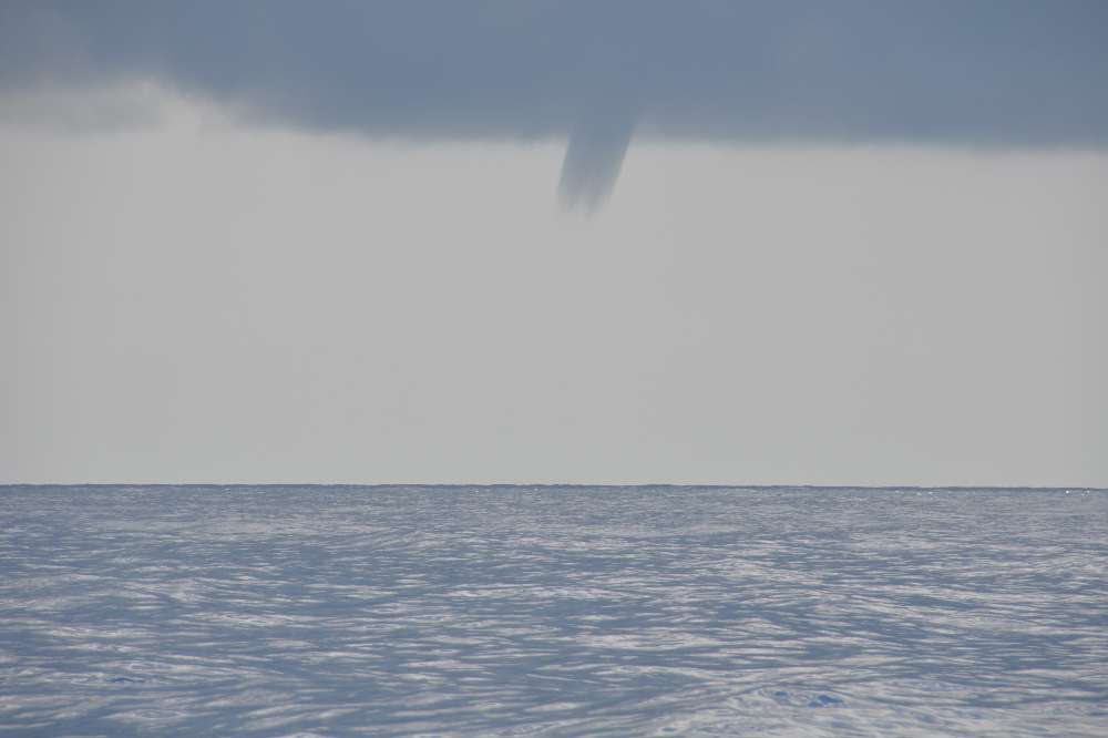 32:46.536 N 079:56.969 W Still no wind. We’re motoring with the current and doing 12 knots @ 1800 rpm. It’s clouded over and we can begin to see rain squalls