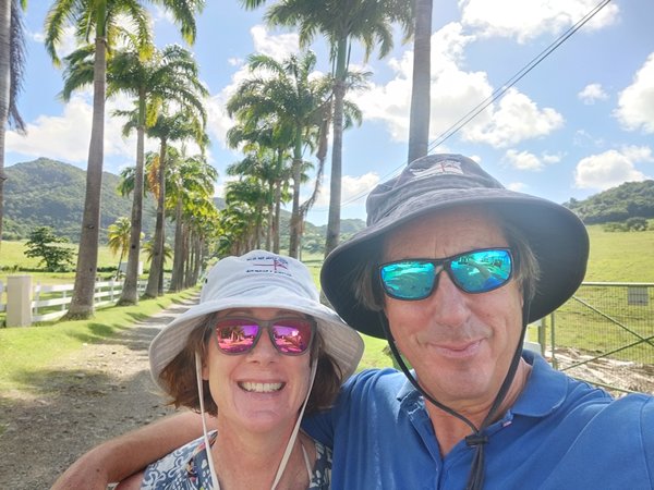 SG looking festive Not wishing to be boring, but we have quite a few life admin jobs to do as well and so, to be very honest, there hasn’t been much to report. Other than, for once, the weather has been superb, yes, I said superb. We can’t actually believe it but this recent period has been the Caribbean everyone imagines! We did manage a very nice walk on New Year’s Day (to blow the cobwebs away!) and found a lovely (palm) tree lined avenue leading to a rum distillery – which was closed as it was New Year’s Day.