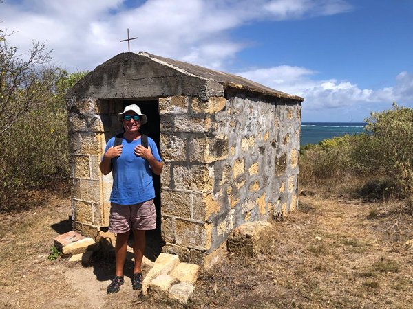 Skip outside what must be one of the smallest chapels ever on the path over Baie des Anglais. This was about the only place we could find shade!