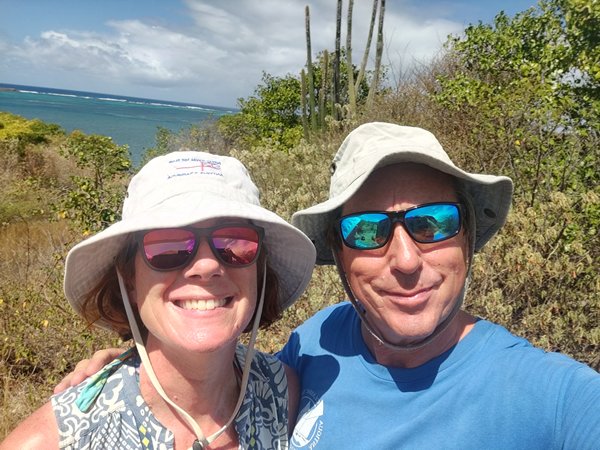 The mate always has a photogenic smile So, back to it, what is the meaning of our statement that we have larger fish to fry? Is it related to our last blog when we mentioned that we’d reveal our future plans? (Plans as far as you can have them these days anyway). Yes it is! Here’s what we’re thinking, in a nutshell (disclaimer: sailing plans can change at short notice – as any sailor knows)… As we approach our three year anniversary of arriving in the Eastern Caribbean we’ve been thinking long and hard, difficult though this is sometimes. A little background won’t go amiss. We both wanted to sail the Atlantic ourselves on our own boat – mission accomplished and we can be rightly proud of ourselves. The Eastern Caribbean is the obvious place to arrive and we gave no more thought than that, other than thinking we’d sail the islands for a while and work the next stage out from there. At the back of our minds thoughts about crossing the Pacific and circumnavigating via South Africa were always there. However, we have found our time in the Eastern Caribbean to be extremely expensive which, sadly, has ruled out the possibility of a Pacific crossing and also, to be honest (we both feel the same as do many others whom we’ve met along the way) we find the Eastern Caribbean, in terms of being on a boat, overcrowded and overrun with charterers who appear to have little experience. This latter shouldn’t matter, but when it’s so crowded, and you’ve been hit twice at anchor as we have, it does add stress every time you leave the boat. Whatever is happening to weather patterns around the world isn’t leaving the Caribbean alone and the sailing, to us, is quite frankly a huge disappointment. I would say that about half the time it’s two windy for words, with swells and seas to match, and about a third of the time you have to motorsail either due to wind directions or no wind at all. If you read the books, then you would be very lucky indeed if you sailed these islands 20 or 30 years ago. There was no overcrowding, the islands had little charter boat tourism and the trade winds were, let’s use the word ‘reliable’. Not so during our time here. We don’t regret what we have done out here but the sailing isn’t for us. So what to do? We weren’t ready to head to Bermuda and start the long trek home just yet, it would be madness for us to stay any longer in the Eastern Caribbean, yet thoughts of a Pacific crossing are shelved. I would just like to say for non-sailors: it is impossible to head back to Europe in a straight line from where we are. It would be like trying to run on a travelator going against you at the same speed as you were running, all with a gale of wind against you. So, what to do? Well, I’ve been researching the Western Caribbean and how to get back east from it when the time comes (not easy). We knew you could sail to Florida from Panama and from there onward via the Bahamas to Bermuda and then the Azores, but we don’t have the required visas for the US. We can go, the boat can go, but we can’t go on the boat without a B1 B2 visa. How daft is that? Then, one night we saw a YouTube video of a couple who sailed from Panama to Cayman, then Cuba, going over the North side of Cuba and onto Bermuda and onward to the Azores. That could well be our route, the mate and I exclaimed together. Let me say that the mate is the ‘traveller’ amongst us and she’s spent a lot of her life doing it. I like the sailing, for me the travelling is secondary but still enjoyable. We also researched sailing in the Western Caribbean and there are a number of current points. In no particular order: you have to make an effort to get there meaning we expect it to be far less crowded (and hopefully with more likeminded people –Mate), there are nowhere near the number of charterers over there, Colombia and Panama are big countries – you can get stuff, with it costing an arm and a leg – and, they are below the hurricane belt. Cartagena in Colombia is an attraction too, a beautiful walled city with history and culture (sadly not really a big feature in the Eastern Caribbean (beyond very enjoyable carnivals! – Mate)). The weather is also largely out of the main trade wind belt and takes its influence from the Central American land masses. So, at last, here’s the plan: In mid-April to mid-May, Stargazer will turn her stern to the Eastern Caribbean and point her bows to the Colombian Island of San Andres, some 1200 M to the west. We aim during the remainder of 2026 to cruise through the Caribbean coast of Panama and head to Cartagena. The following year, we will visit the beautiful San Blas Islands (look them up) and see how the year goes. Ultimately, when we feel we are ready to leave the Western Caribbean, we will take the longer way home via the route already mentioned. For now, Vicky is coming and it’s time to have a great couple of weeks, relaxing and not doing any boat jobs. Except I’ve got to fit a fridge thermostat and - clonk – that was the sound of the mate hitting me over the head... |