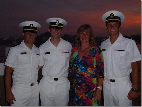 For once we got reciprocity at the Edgar town Yacht club, so we booked dinner for 6.30, that’s the only time they had left that evening…. I was looking forward to having time to get dressed up as it’s a formal dining room, with jacket and tie for men etc. Had to go to Jack Wills to buy a tie for David. But all went to pot, after such a storm and downpour, when we had left the forward hatches open and also our hatches over our bed, the boat was awash with water. We had 1.5 hours before the meal to strip the boat and bedding off the beds, the mattresses were even wet through. I pegged all the sheets outside as it was now lovely and hot but the only trouble the humidity was through 96% so it was impossible to get fully dry. It was a rush. The time came to get ready and the hair would not go right, i put makeup on for the first time for a while and my dress on, I was still pleased with the results I could still look and feel good not like a sailor if I tried. Next into the RIB as we had to dingy ashore, the sea had still not settled down, the hair was now back to its normal windblown style and the dress, luckily it was splash proof. I think we will be getting a bigger RIB for the next season. The dining room was quite formal and busy, we had a lovely waitress for the evening and she loved our accents and loved London… We had a starter of Oysters and Beef tenderloin with asparagus for our main course all of course washed down with a bottle of red wine. I had a glass of champagne with my starter and helped David finish the Red with my steak, both dishes were very good. We even had the naval officers arrive at the dock in all their whites, they were sailing around the islands in competitions for the summer season, all very nice young lads. They reminded me of my wedding night when David dressed up as a Naval Officer ….what a romantic!! On our way back to the boat, I had remembered the torch and cloth to wipe the seats, it was typical the dingy ride back to the boat was flat calm… Sunday morning after a leisurely morning, speaking to Helen and Andrew, they both have had great holiday’s we moved further round Martha’s Vineyard to Vineyard Haven where we will spend a few days before we go to Newport, Rhode Island.