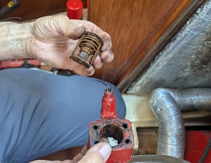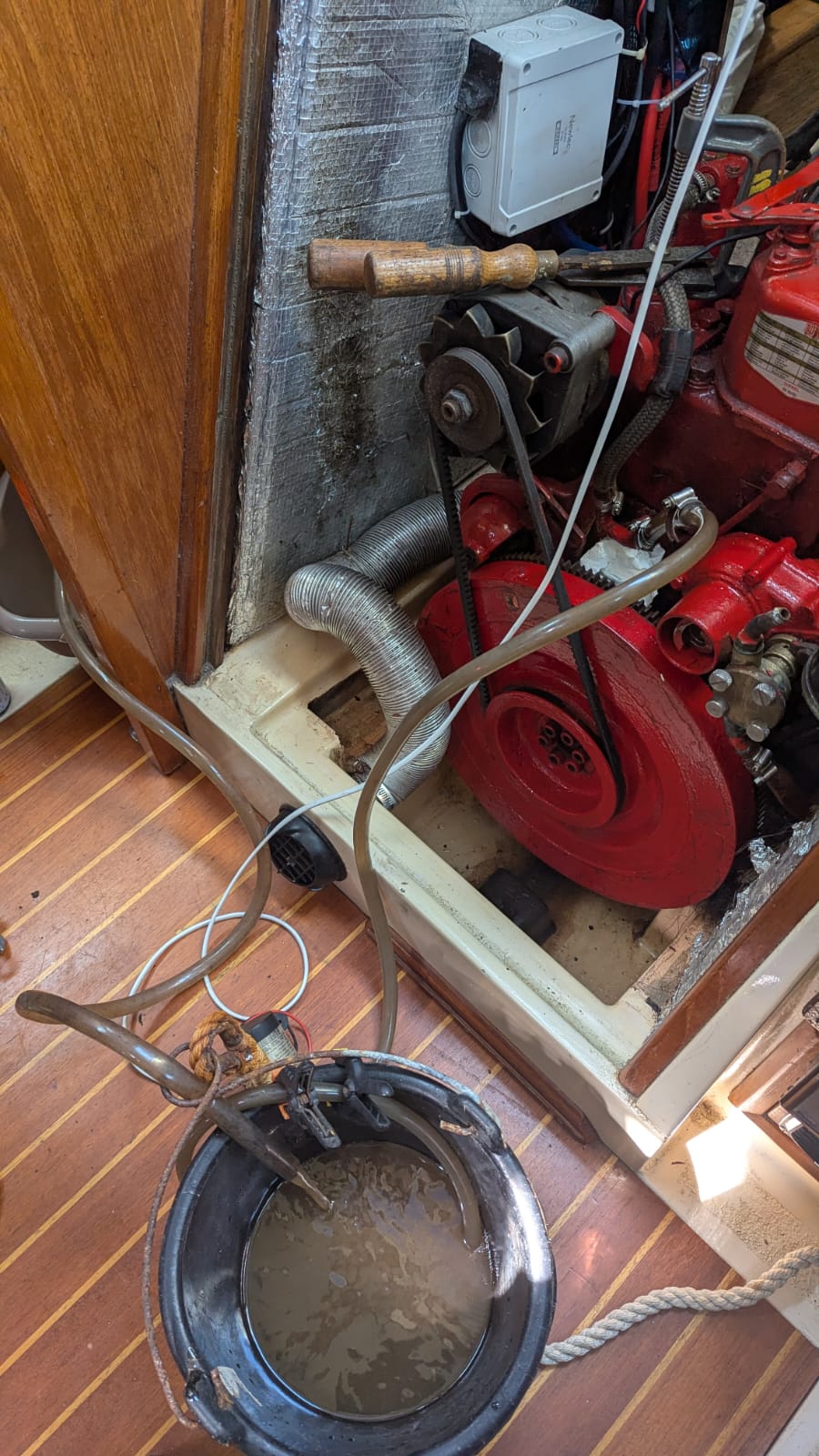050:21.23 N 003:34.24 W Dittisham We’re still chuckling that Harry returned to university via sailing boat and steam train. However, as we pulled out of Kingswear yesterday he listed all the things he realised he’d left on board TC…. fortunately a quick search online found a “Pop up Post Office in Dittisham runs from 0830 – 1000 on Thursdays”. Lucky chap. After a run ashore with his two packages we realised we had to stop procrastinating and get stuck into dismantling the engine to find the source of the overheating which had reached 150 degrees yesterday. Here is what occupied us today: Began by trying to rod through the coolant inlet in the cylinder head (unsuccessful) Removed the alternator, exhaust system and manifold to pour water through (unsuccessful) Removed the inlet hose to rod through (unsuccessful) Used liquid Fernox to clear the calcium build up (this fizzed and bubbled - good news) After ¾ hour this ate through the calcium (success) Poured water into the cylinder head passages until it came out of the manifold (success, eventually) Reassembled the manifold Removed the thermostat and tested it operated at 60 degrees in a saucepan (successful) Pumped liquid Fernox through the cylinder head passages (successful) Reassembled the thermostat, replaced the alternator, exhaust, rev counter, fitted a new drive belt Ran for 30 minutes at 1800 RMP (success) Such a relief to have solved this problem, Bol certainly knows his engine. Back to Dartmouth tomorrow and plan to leave Saturday. |