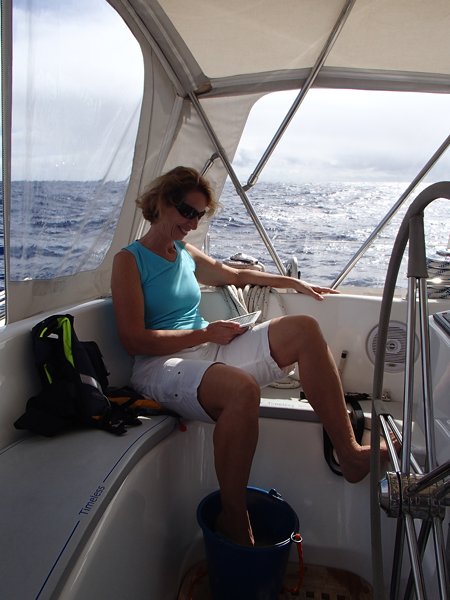 Had barnacles grown on the propeller whilst we had been sailing?